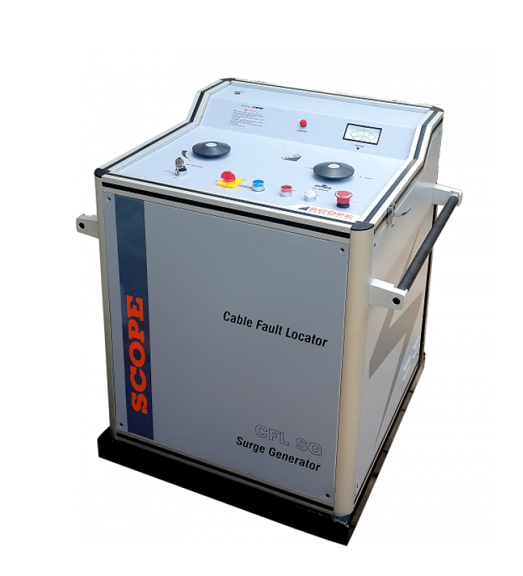 The CFL SG 3210 is a high-energy surge generator for fault location on medium- and high-voltage power cables up to 33 kV. With selectable output ranges of 0–8 / 16 / 32 kV and up to 1000 J per range, it supports all standard fault location methods when paired with CFL Prelocators and Pinpointing Systems.