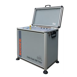 The CFL SIMF is a combined surge impulse generator and prelocator used for locating high-resistance faults in underground power and communication cables. It integrates TDR (Time Domain Reflectometry) and Surge Impulse (SIM/ICM) methods in one portable unit, enabling both distance measurement and pinpointing. The system is designed for field engineers requiring a complete fault detection solution in a compact, durable form.