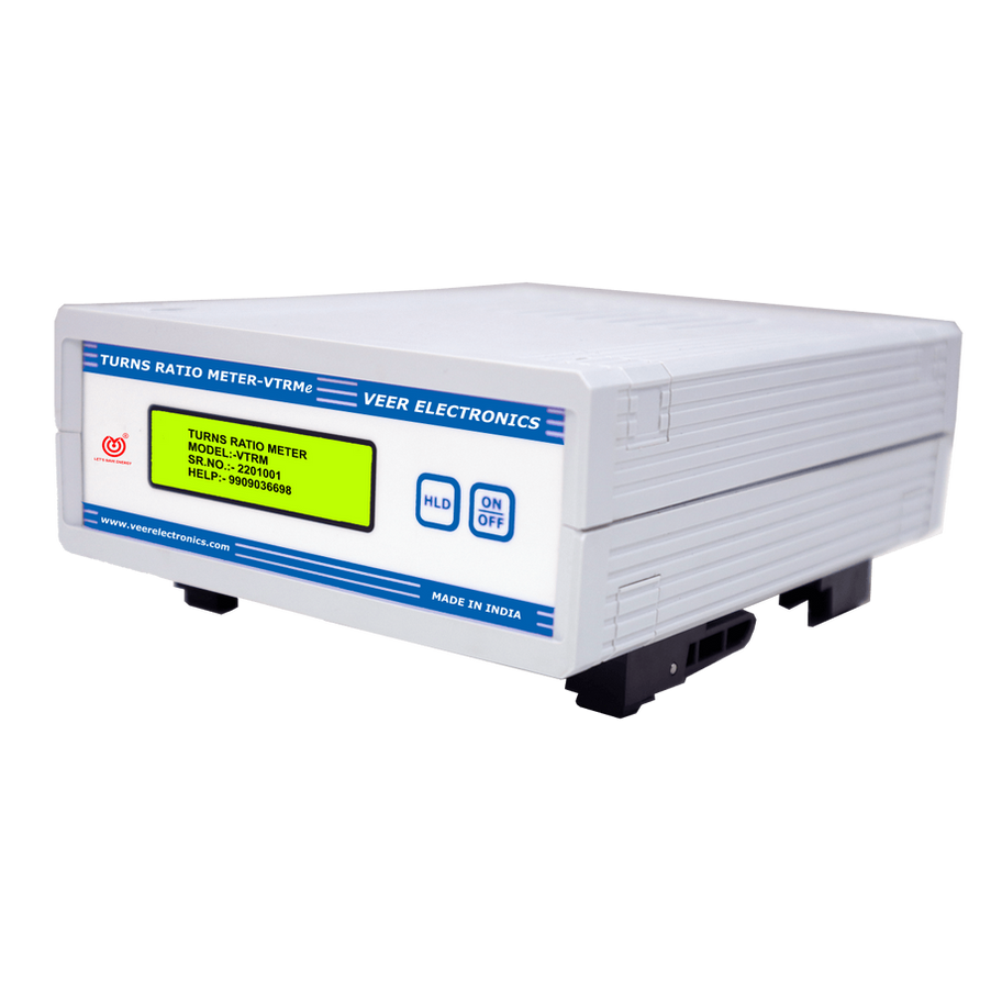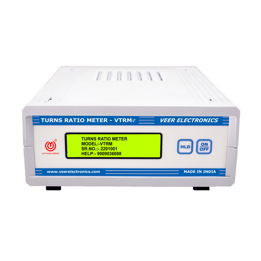 The VEER VTRMe is a compact 1-phase transformer turns ratio meter designed for quick and accurate no-load ratio measurement. It calculates the HV-to-LV turns ratio and displays results directly on the LCD, including reverse polarity indication. With a lightweight design, essential accessories included, and a simple user interface, VTRMe is ideal for transformer manufacturers, repair workshops, and field technicians.